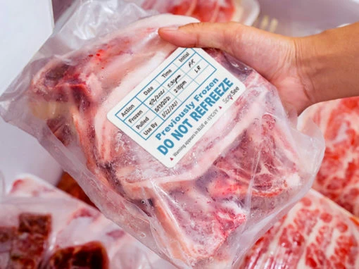 Once food has gone through a freeze / thaw cycle, the quality and/or safety of the food can be compromised if it is refrozen. Simply place the DO NOT REFREEZE Label on the packaging and when the temperature drops below -15°C/5°F, the text alerts handlers that the product cannot be frozen again.